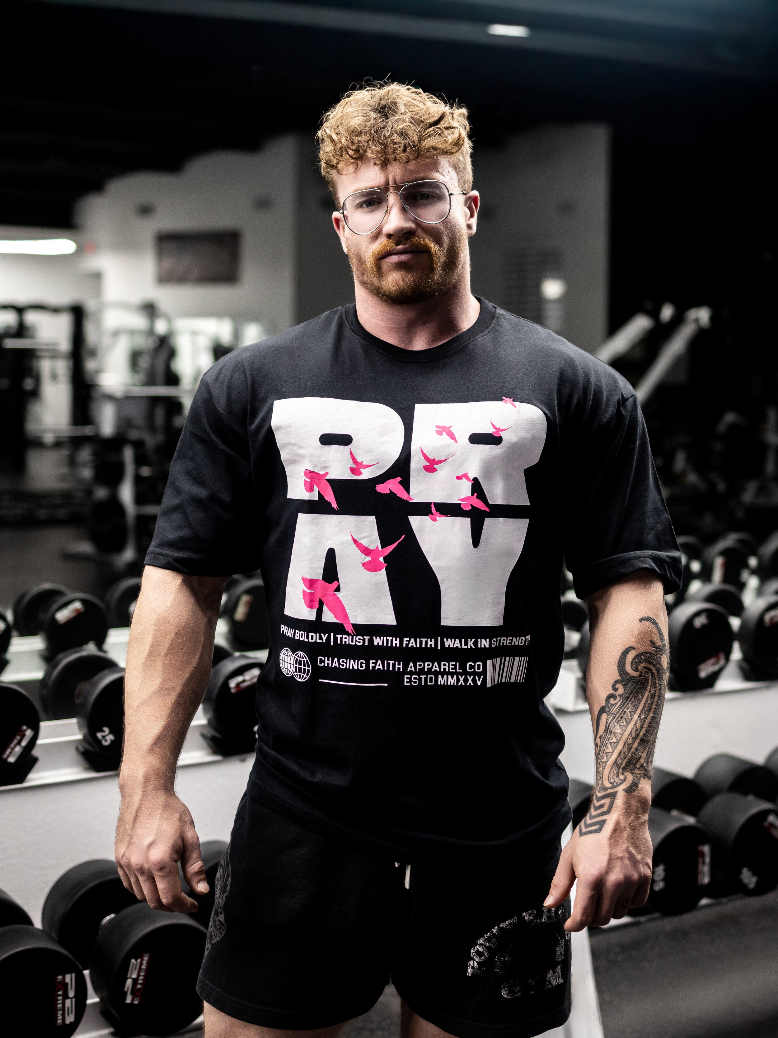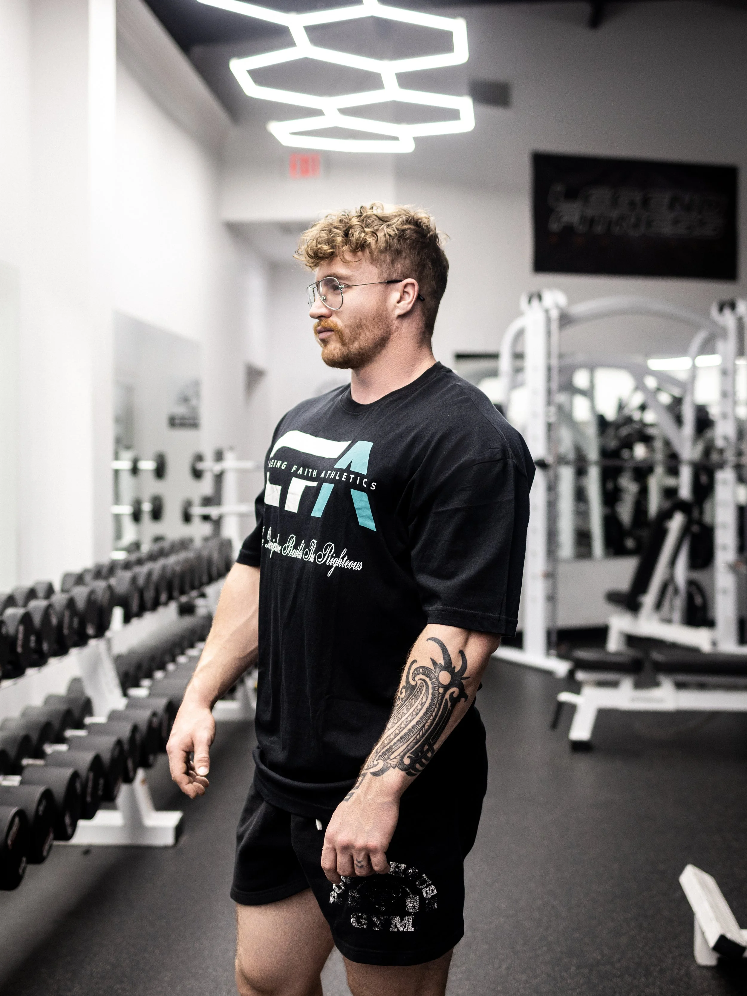 Bold “Fear No Evil” typography paired with Psalms 23:4 scripture. Oversized streetwear feel with a premium heavyweight tee. Strong, faith-driven statement piece designed for confidence both in and out of the gym.